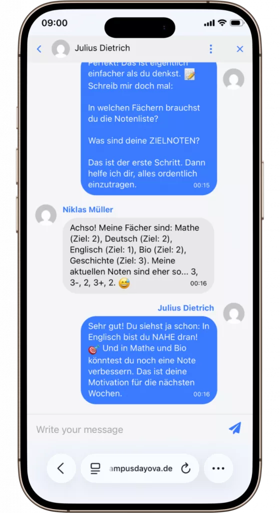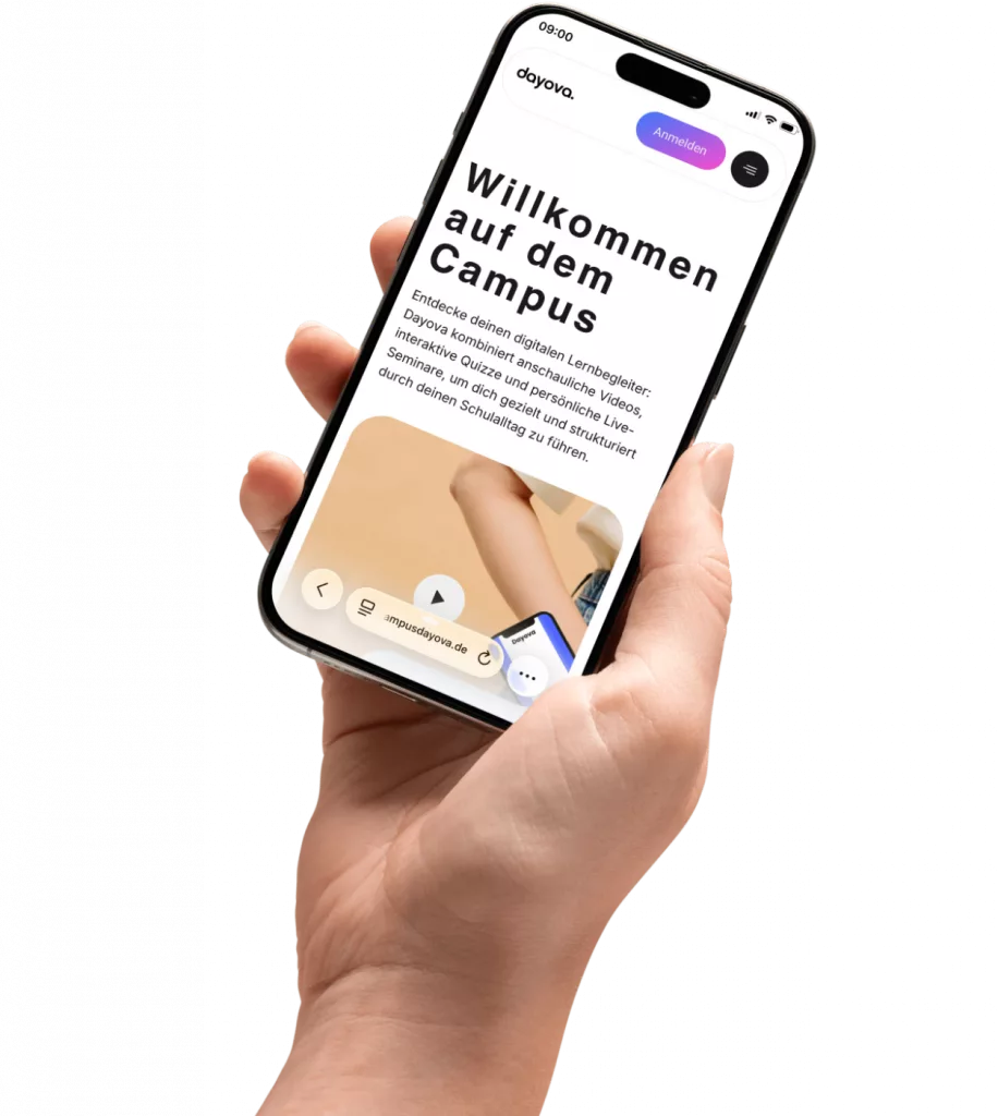 Dayova vermittelt dir bewährte Lernmethodik und bietet darüber hinaus individuelle Förderstunden an, die du direkt über den Campus buchen kannst.